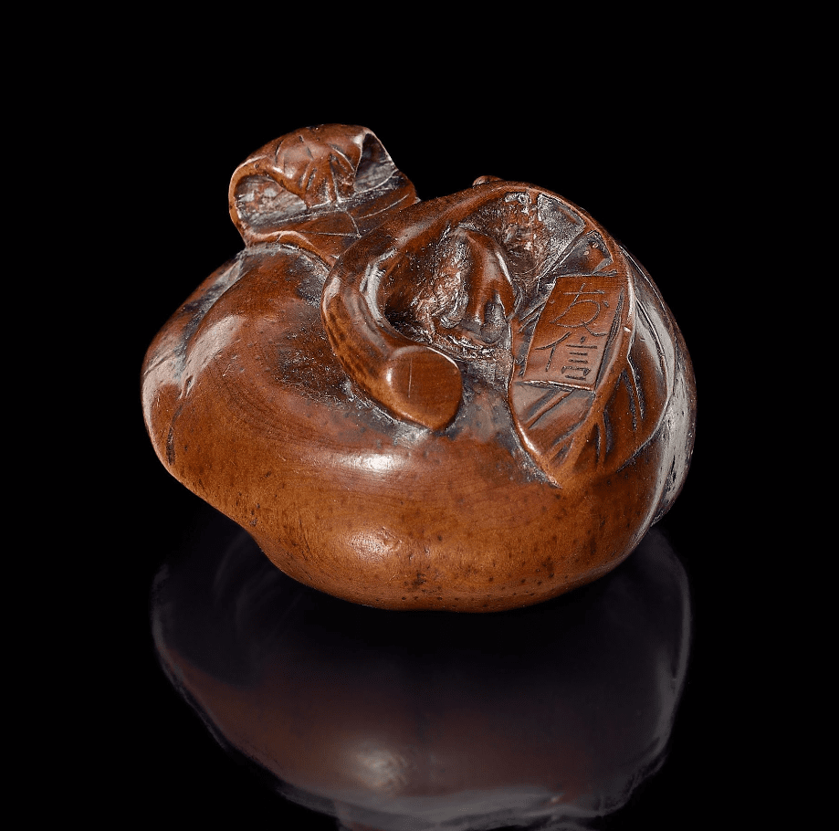 sélection de lots expertisés Lot n° :76JAPON - Epoque EDO (1603 - 1868), XIXe siècleNetsuke en buis, buffle couché, la tête tournée vers la gauche. Porte la signature apocryphe de Tadatoshi. L. 4.5 cm Estimation 200/300 Euros Lot n° :79JAPON - Epoque EDO (1603 - 1868), XIXe siècleNetsuke en buis, panier rempli de double gourdes, éventail et boites. Signé Nicho. Dim. 1.7 x 3.7 cm Estimation 300/400 Euros Lot n° :82JAPON - Epoque EDO (1603 - 1868), XIXe siècleNetsuke en buis, kaki dans son feuillage. Signé [Arima] Tomonobu. D. 4.5 cm Estimation 500/600 EurosAzur EnchèresCannesVente le mercredi 4 mars 2026 à 14h.Expositions les 2 & 3 mars 2026 de 10h à 12h et de 14h à 17h.31 boulevard d’Alsace, 06400 CANNES. ACCÉDER AU CATALOGUE ACCÈS À LA VENTE EN LIGNE